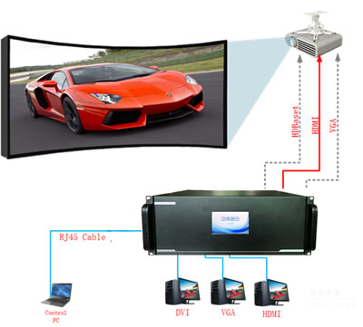 主要包括融合帶的自動生成、融合邊帶的特性處理、相鄰?fù)队霸O(shè)備的色差匹配等功能。融合器可以支持多路不同的信號輸入,支持M×N 的無縫拼接顯示,能實現(xiàn)多路信號的開窗口顯示、窗口任意漫游、窗口大小任意縮放、視頻與計算信號的任意疊加等功能。